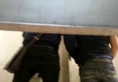 Intriguing gay sex encounter happening in the second toilet.