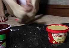 Peanut butter jelly smeared toes footjob fantasy dirty talk