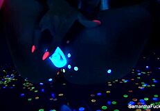 samantha saint spreads legs teasing pussy and big tits solo