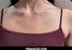Tight shaved pussy fights rough bareback entry till passionate brunette yields cumshot