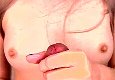 old gilf massages stepson huge cock handjob to squirting orgasm cum covered tits