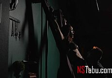 डोमिनेंट ग्रुप बंधी हुई गुलाम को दीवार स्टॉक में सार्वजनिक अपमानजनक चुदाई करता है