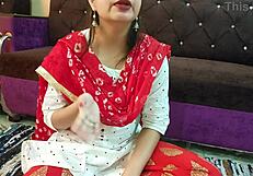 hindi stepmom catches teen stepson peeking and begs him to fuck her big tits