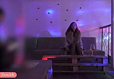 young girl dances privately in swing club showing off on camera