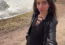 Will a stranger girl agree to a public cumwalk for a new iphone? She bends over, rides, and gets cum covered in rough outdoor sex.