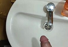 Wow! Young Guy with Good Cock Masturbates Hard in a Restaurant Bathroom!