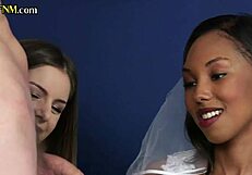 oh man i can't believe this classy ebony bride in wedding dress jerks my old cock with her bff in cfnm 3some