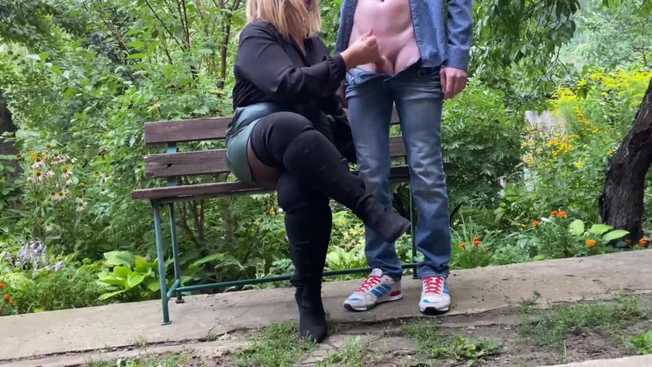 BBW Student in Short Skirt Sucks Teacher in Park for Grade, Shows Cum on Cute Face and Big Tits