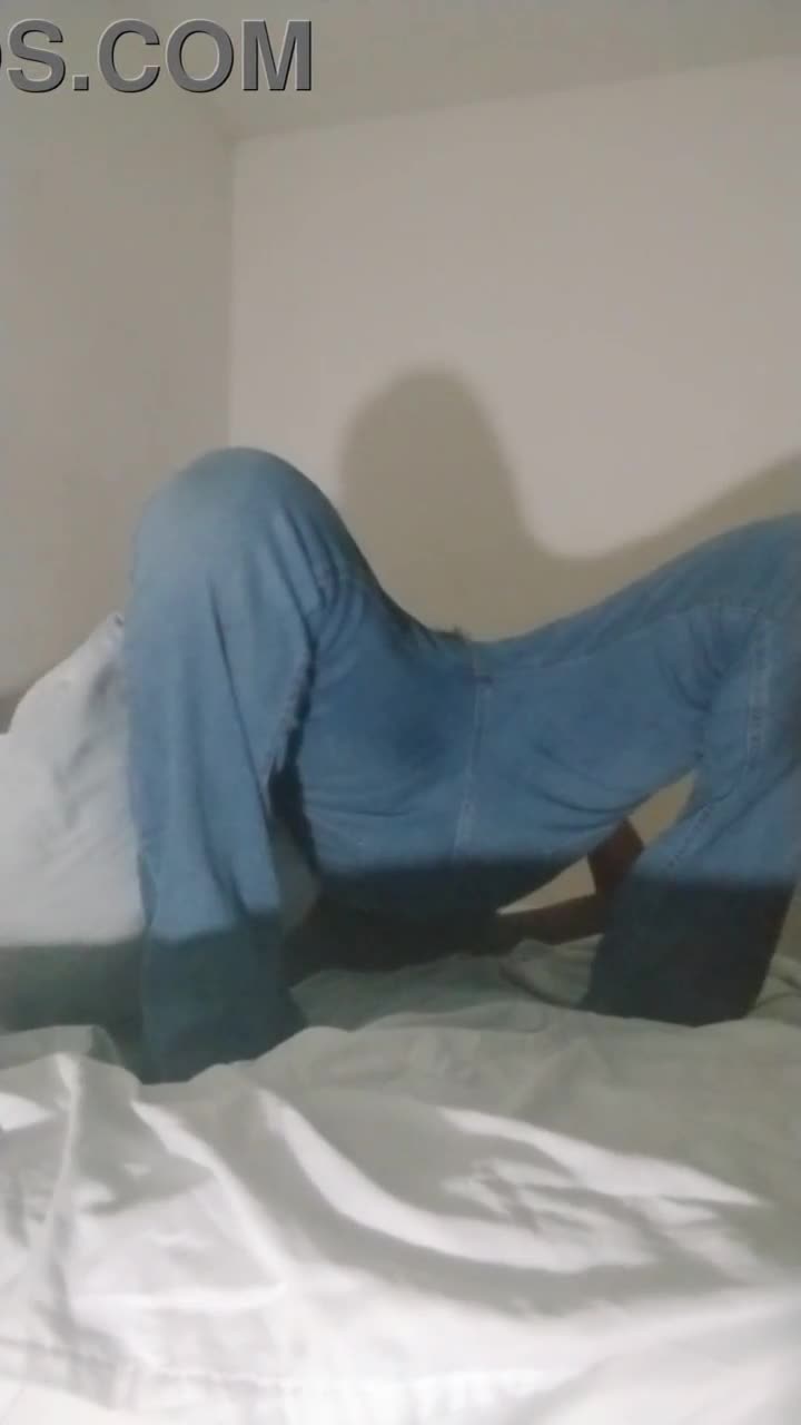 Turkish girl in ripped jeans shakes hard with an intense orgasm on top!