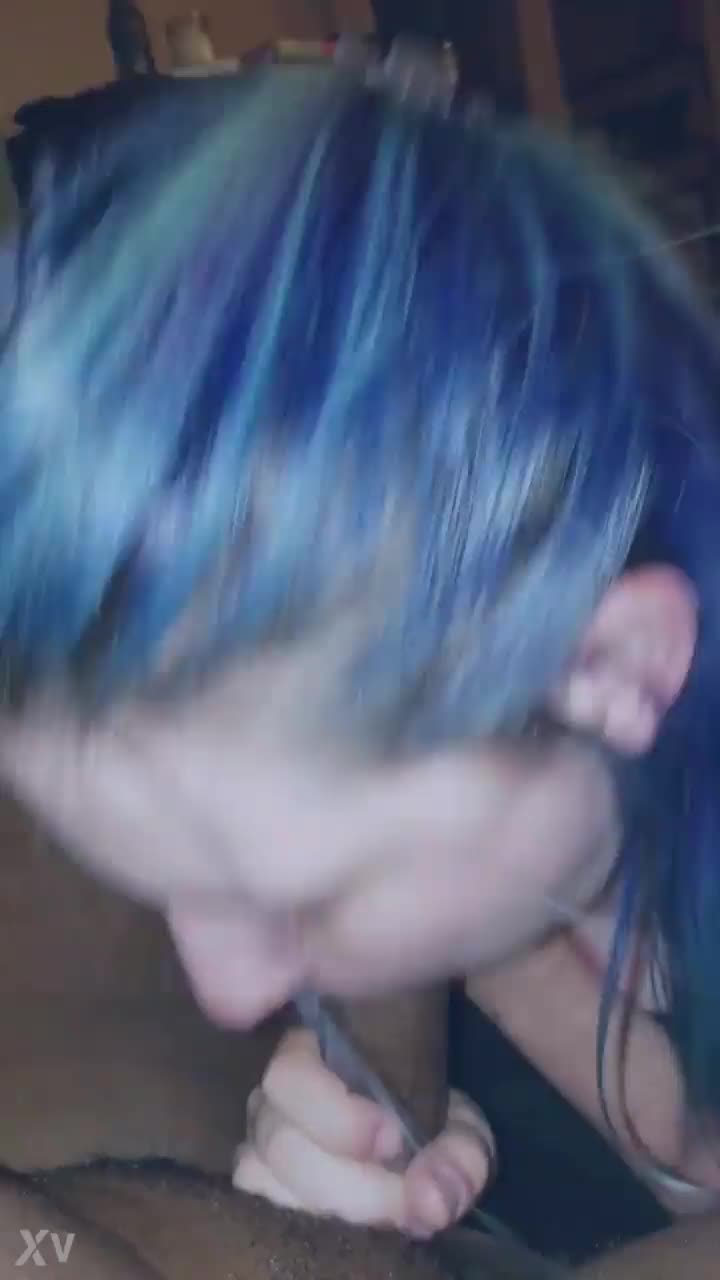Nasty slut giving a sloppy blowjob to that big black cock