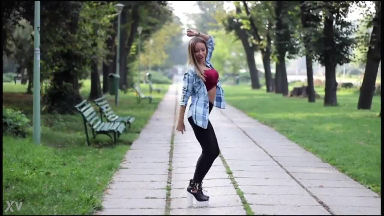 Sexy girl dances in street with aarina park live model