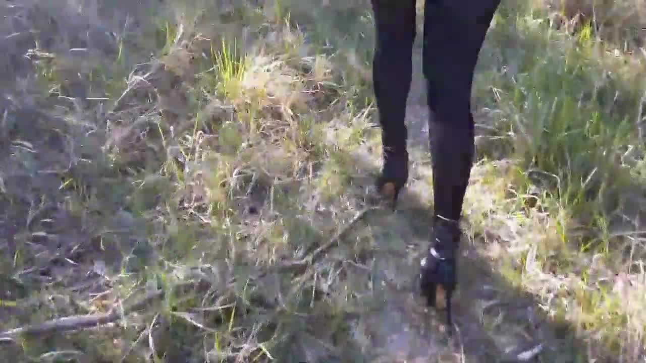 Walking in the woods with high heels 😊
