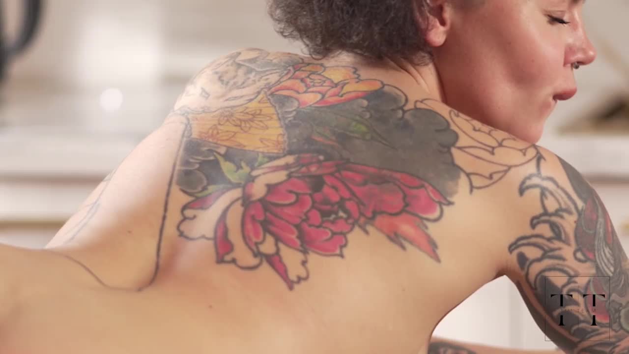 gentle bedroom caresses with tattooed girls turn into wild action