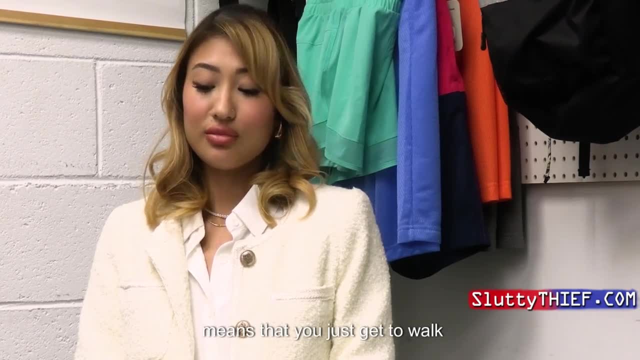 Watch this cute Asian teen get caught shoplifting at the store and face hardcore punishment with blowjobs and doggystyle.