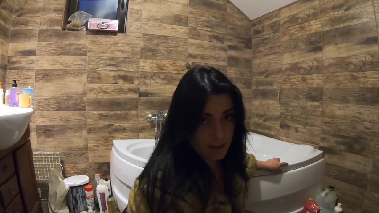 Girlfriend undresses in bathroom, revealing big ass and natural tits