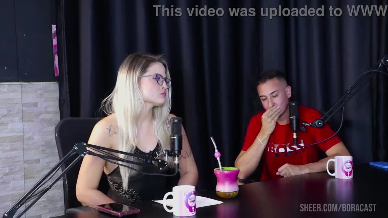 Best moments of Bruna Ferrari on Preliminares podcast with Bia Hot in sheer red - part 2
