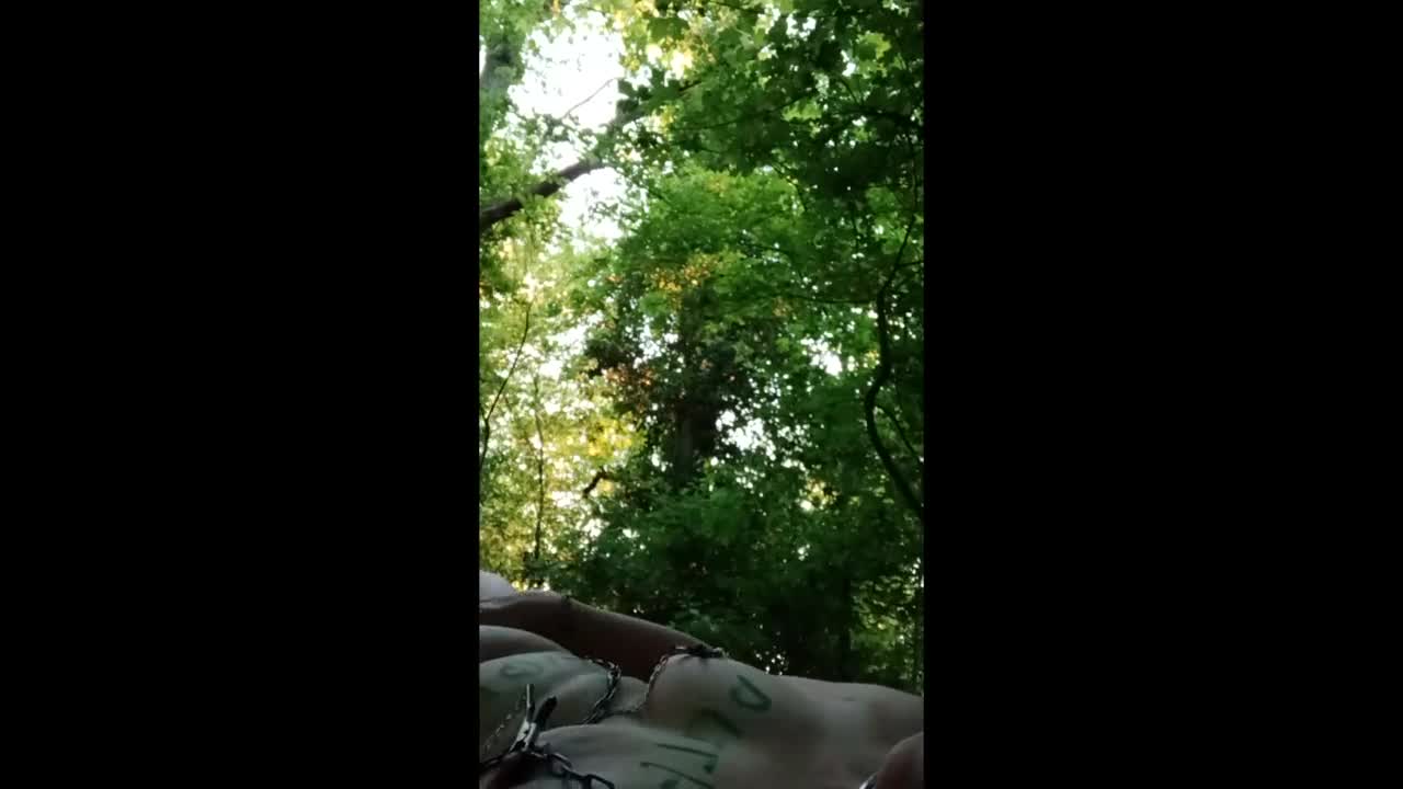 2025 Esclave F Autoseance in Leather Harness with Vibrating Dildos Outdoors