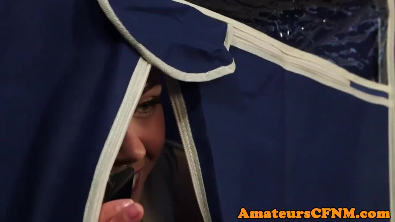 In a dimly lit room, the cfnm femdom babe in a silk nightgown binds and teases a bbc guy. She expertly works him with intense oral skills.