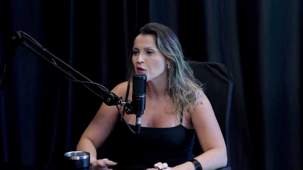 Best moments of Bruna Ferrari on Preliminares podcast with Bia Hot in sheer red - part 2