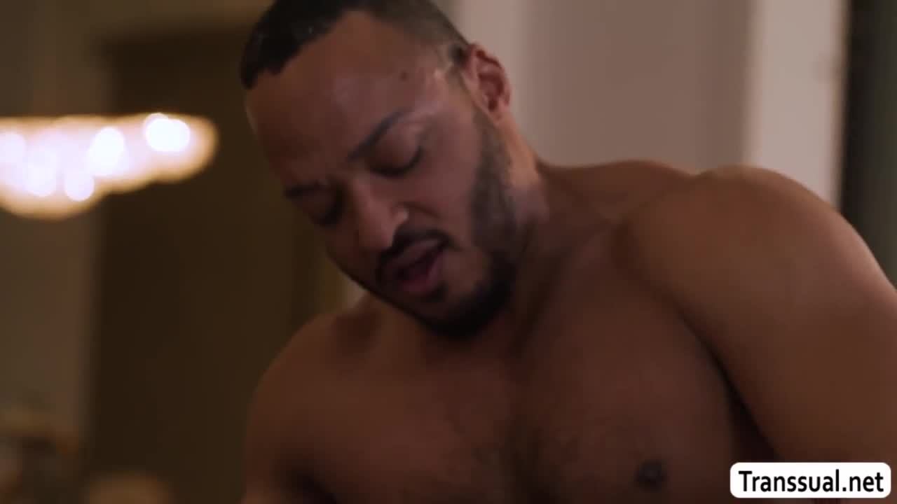 Yo this shemale gets bareback pounded by a drunk black guy in wild anal action
