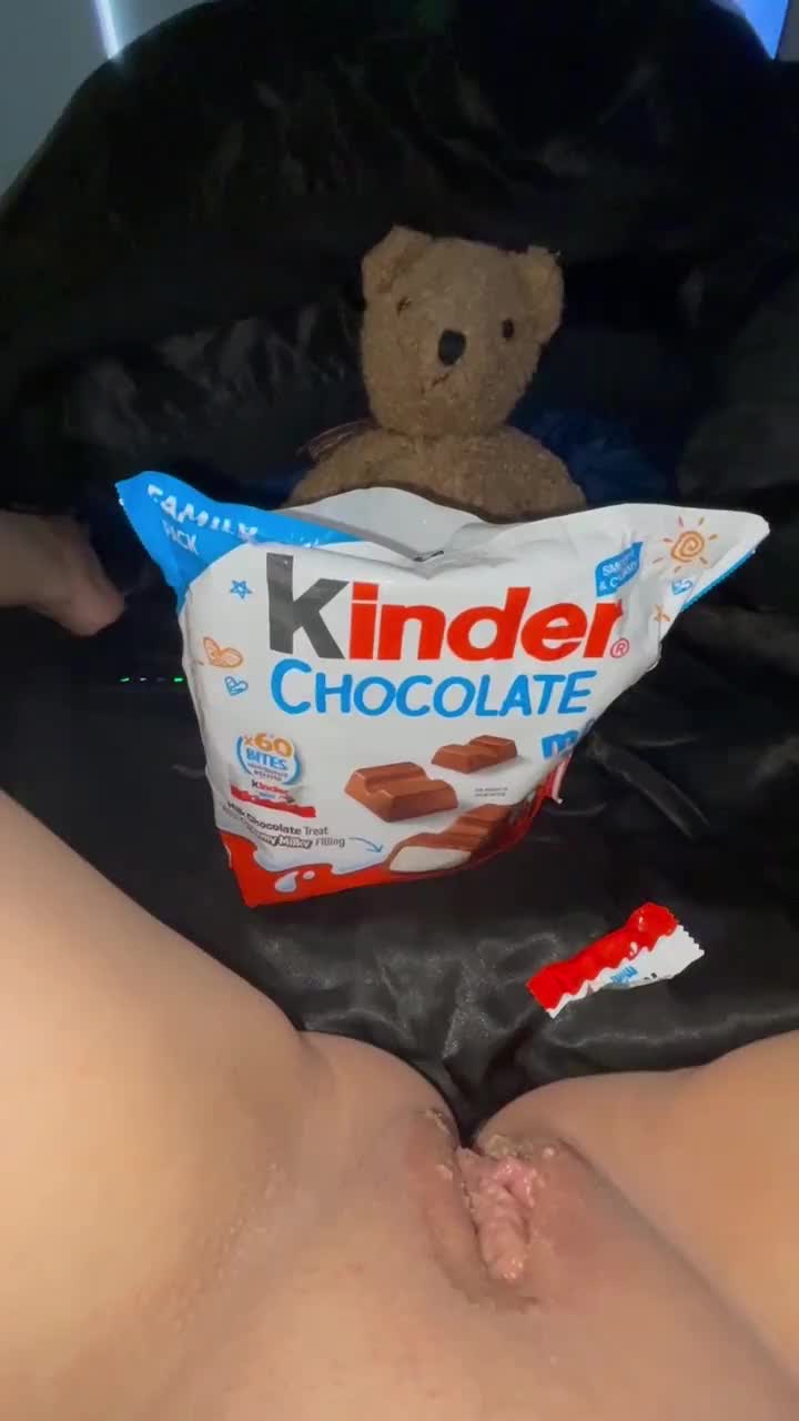 Yo this kinky arabian snowwhite teen stuffs chocolate in her virgin pussy masturbating hard