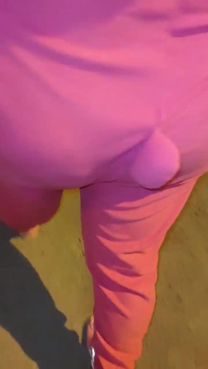 Voyeur watches curvy BBW milf in leggings on snowy street