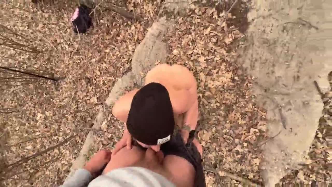 Blonde strips naked flashes big tits then fucks outdoors in forest