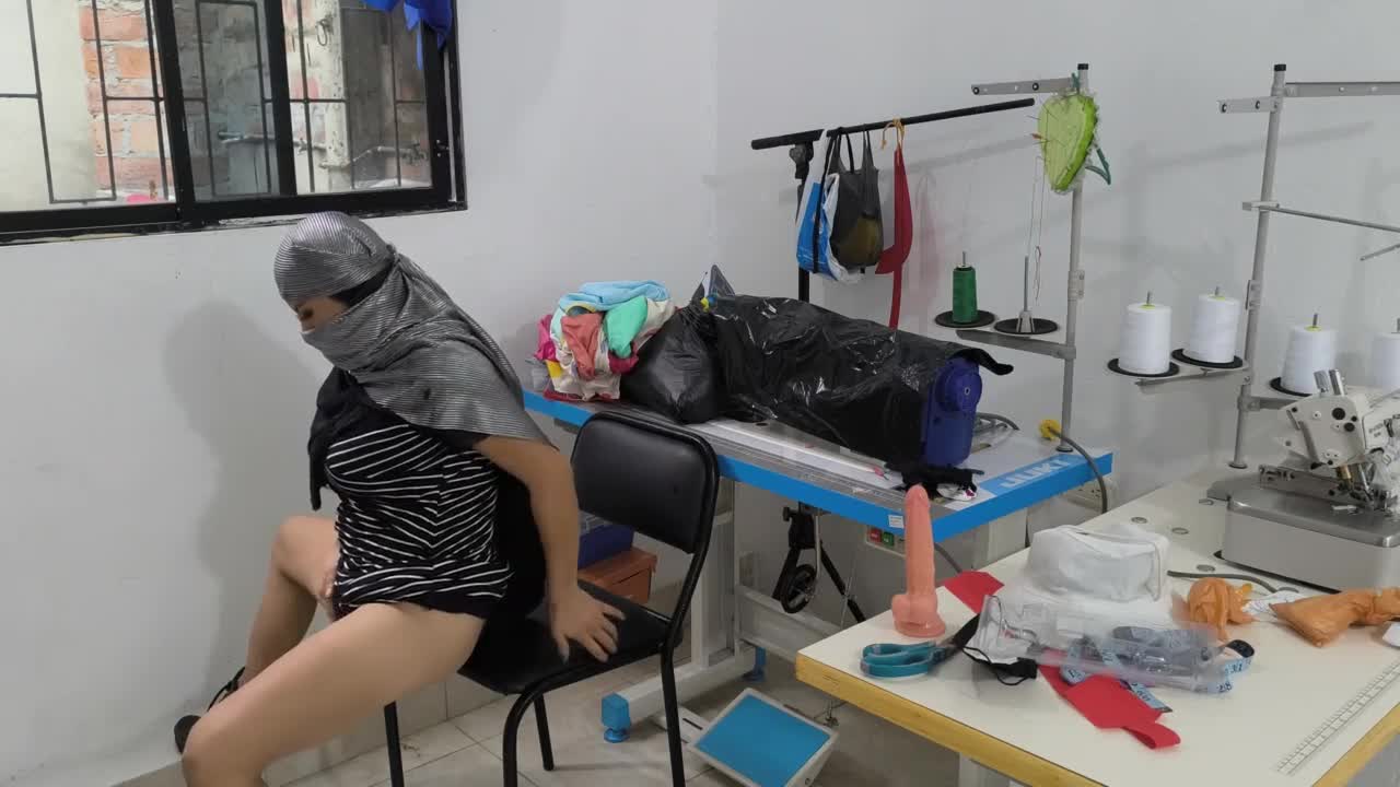 Indian seamstress fingers wet pussy in clothing workshop eagerly