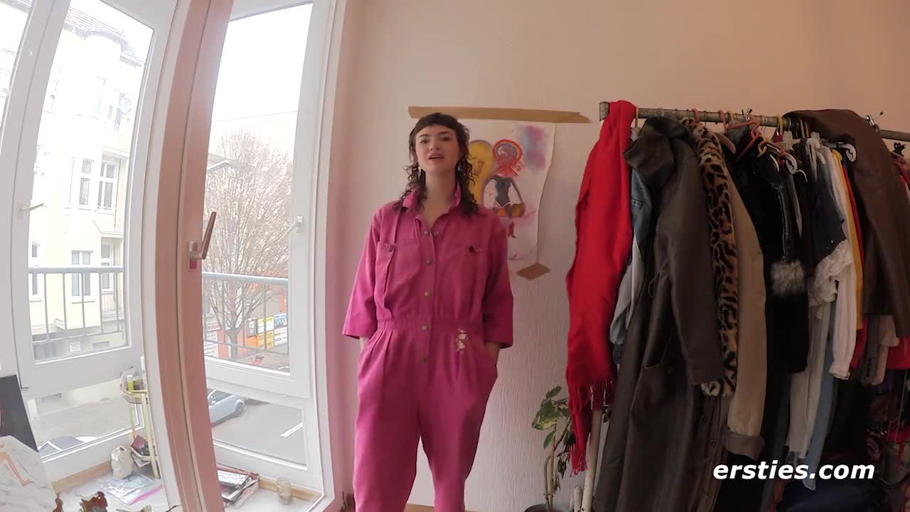 Skinny emo girl shaves pussy while gaping asshole with huge dildo