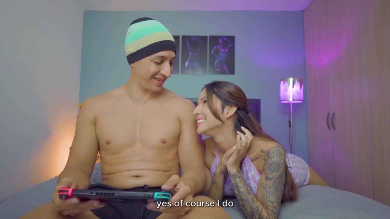 I beat stepbro at his game then sucked his huge colombian cock hard on our bed