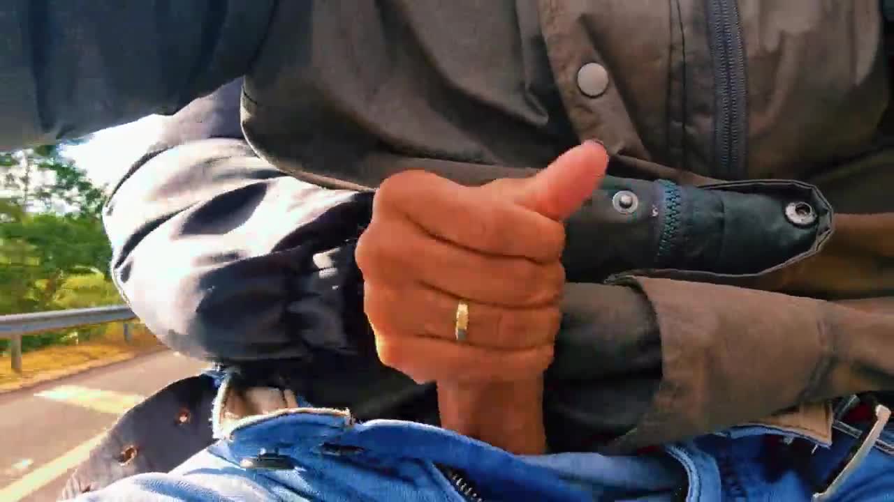 Naughty Hotwife Jerks Off on Road to Cum, Almost Caught