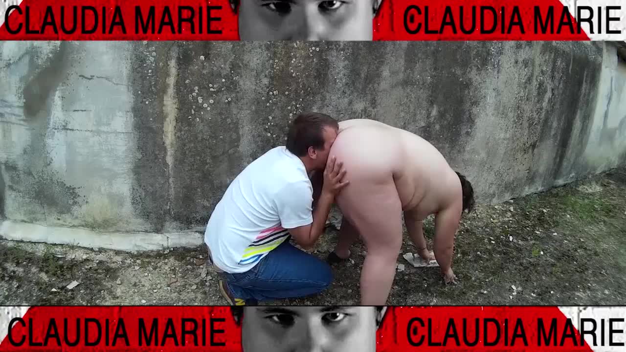 Impossible positions to lick fat woman's pussy on the street, loving her juices until she cums