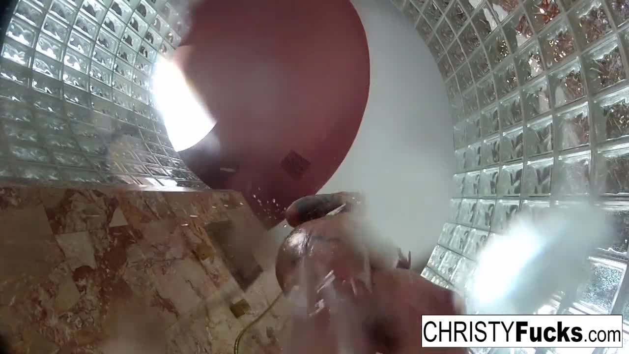 Hot shower BTS fun with Christy Dahlia and Ivan's big tits?