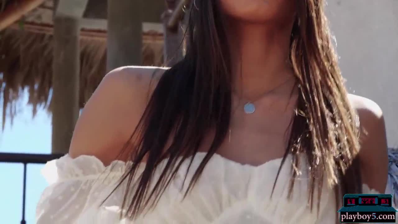 Sexy Big Boobed Brunette Teen Mila Azul Strips Naked Naturally