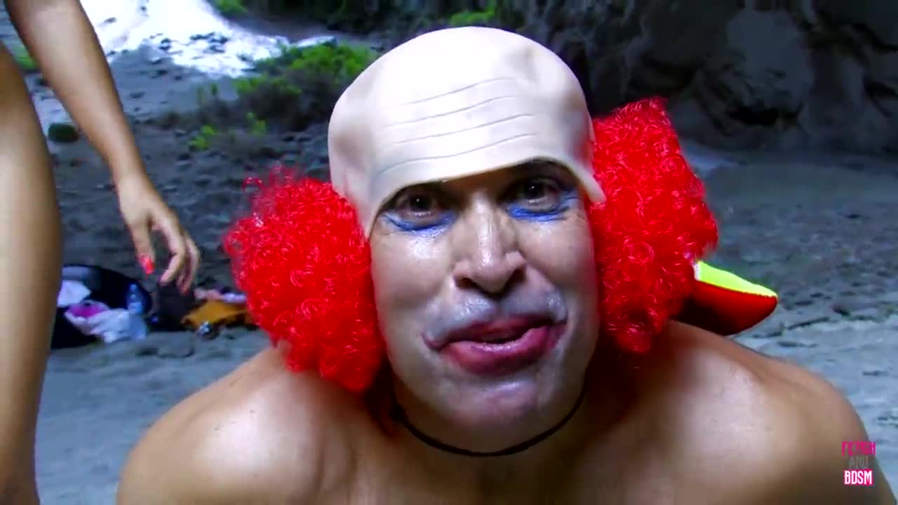 Chained Hot Brunette Fucked Hard by Clown in Wild Outdoor Scene