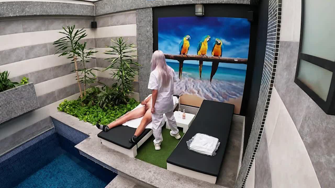 waifu academy! busty virgin asian teen rides huge cock in public restaurant for promotion
