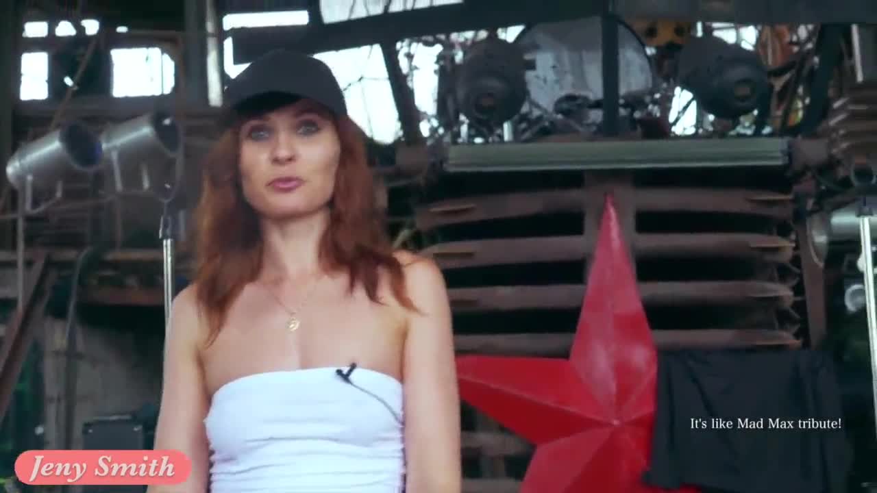 Jeny smith teases with camel toe and big ass in tight white suit outdoors.