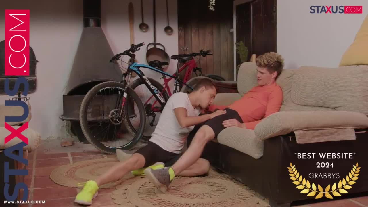 Two cute cyclists bang hard after a sweaty ride on staxus