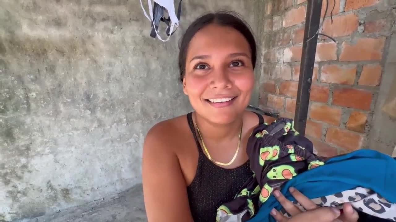 सुंदर मैक्सिकन औरत झुकी हुई, कपड़े धोते समय जोर से चिल्लाती हुई चोदाई
