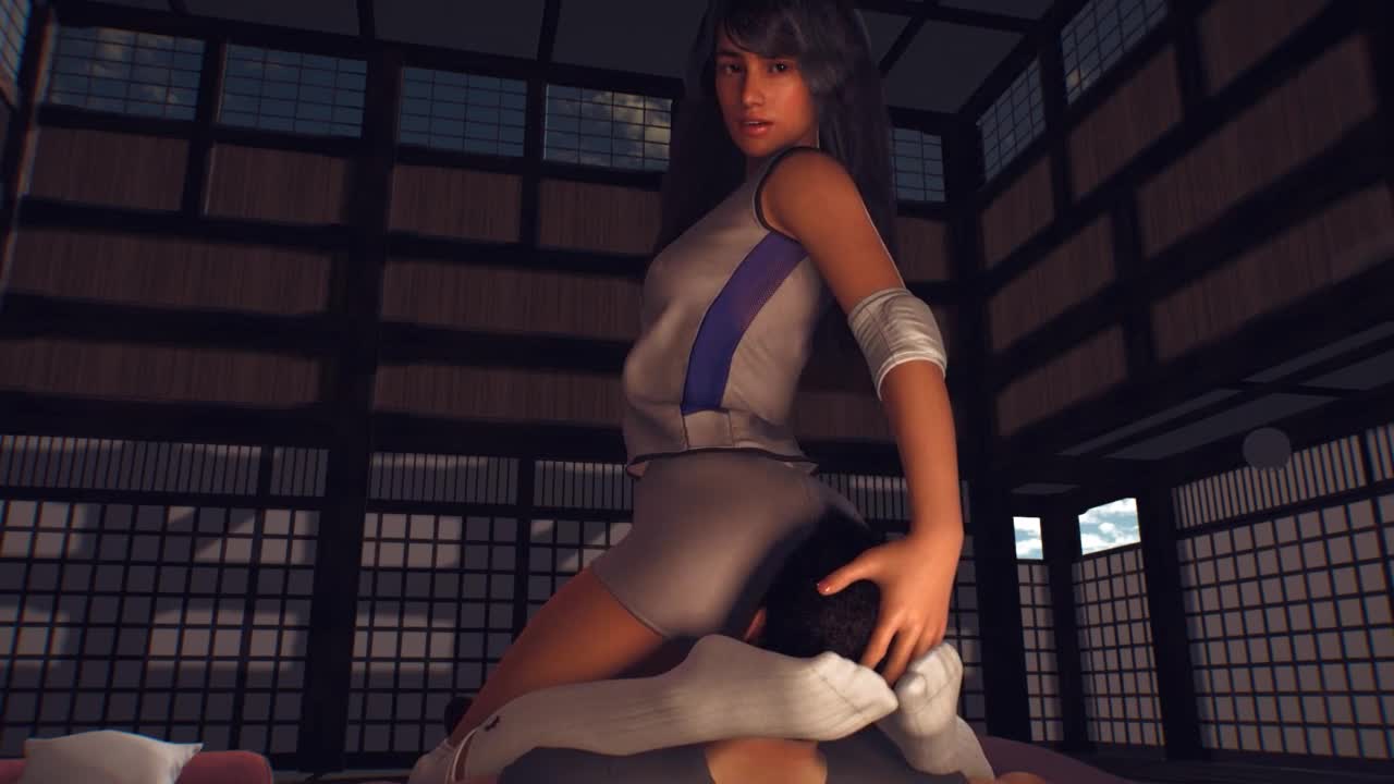 asian woman dominates with facesitting in blue panties during rough wrestling