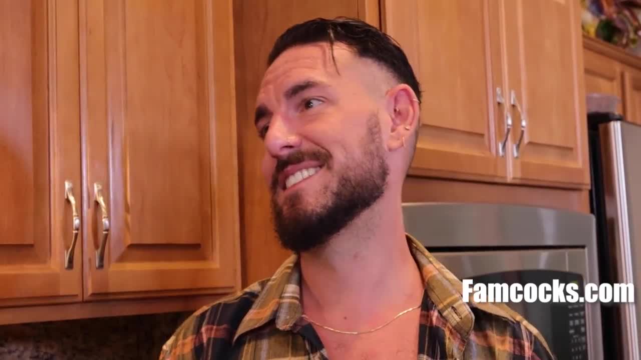 Thanksgiving gay family spitroast with daddy and uncle in bareback threesome