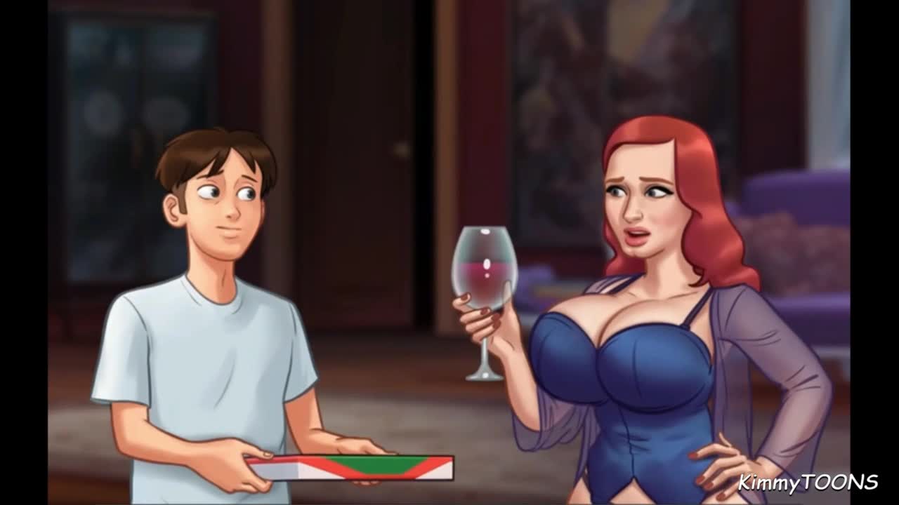 In summertime saga, stepdaughter catches stepmom riding her boyfriend's monster cock in the hotel room