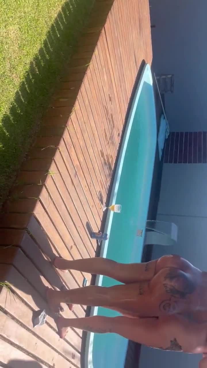 Blonde Vicky Vette masturbates in bikini by the pool