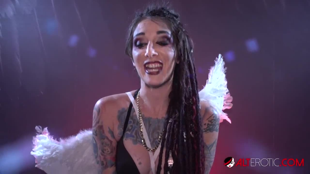 Tattooed Milf Sarah Stuffs Her Pussy Hard With Red Toy In Wild Scene