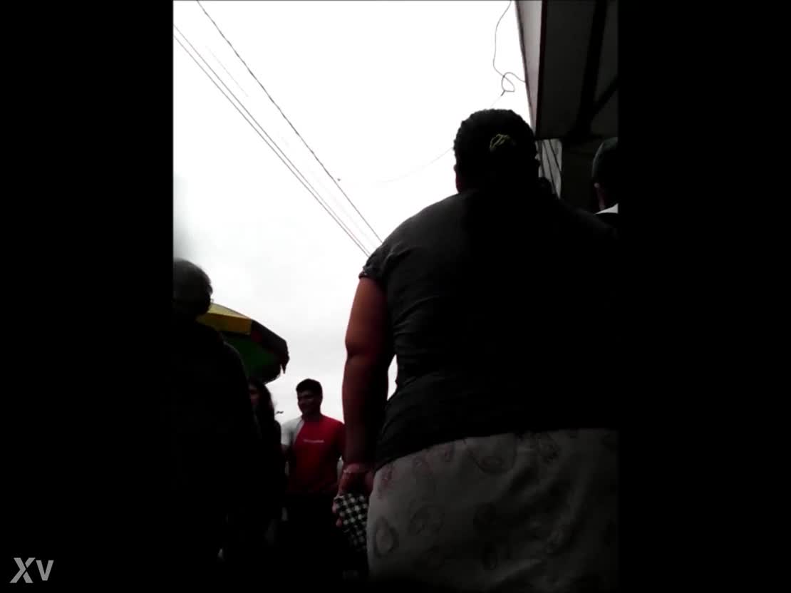I watch my peruvian neighbor doing her shopping.