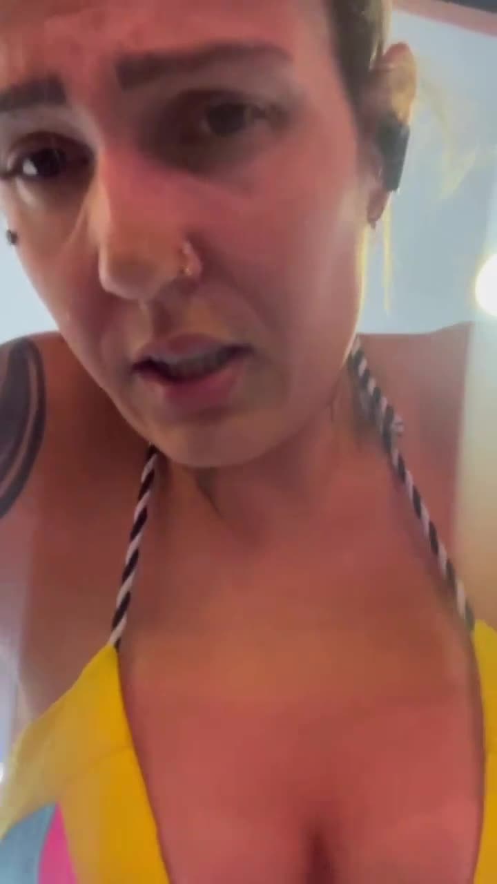 Training in thong bikini at beachfront gym, got so wet from horniness dripping down legs like sea water