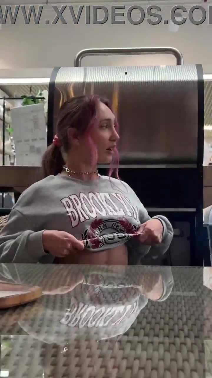 Hey, wanna peek at this irresistible babe flashing her shaved pussy and perky tits?