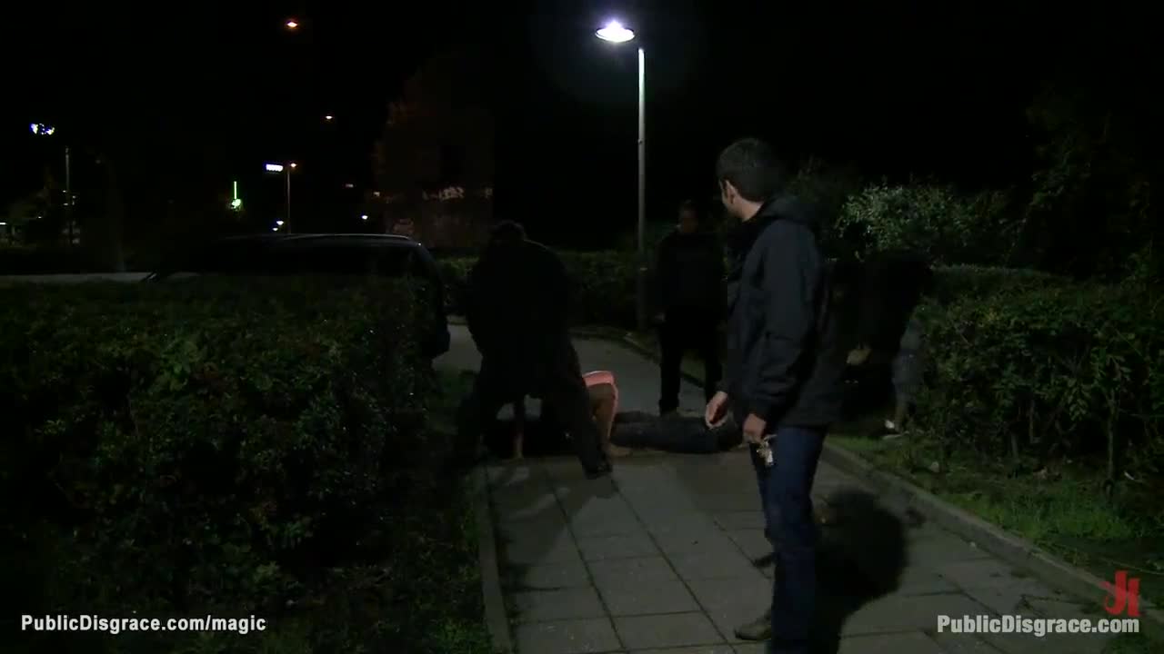 Intense Pleasure As Young Hottie Alexis Crystal Gets Fucked In Public Street By Two Guys