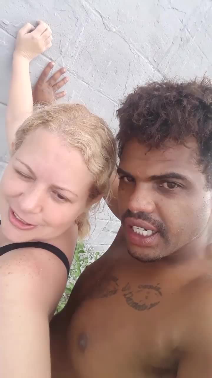 Blonde with big tits gives blowjob to monster black cock in interracial video call