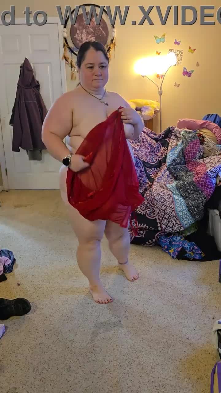 Brunette BBW In Lingerie Performs Striptease With Huge Ass Dancing